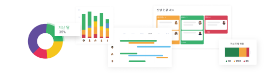 업무 진행 상황 및 마감기한 등 업무의 전반적인 현황을 한눈에 파악할 수 있는 기능이 있는지 확인해 보아야 합니다. 더불어 다양한 방식으로 데이터 시각화가 가능하다면 더욱 직관적으로 데이터를 파악할 수 있겠죠?