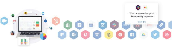회사에는 세일즈, 마케팅, IT, 개발, CS, 재무 등 많은 팀이 존재하는 만큼 다양한 외부 서비스를 필요로 하고, 팀별로 사용하는 툴이 다를 수밖에 없습니다. 외부 서비스와 협업툴을 오가며 업무를 진행하는 것이 스트레스로 여겨질 수도 있죠. 외부 서비스와의 연동은 한 곳에서 업무 통합 관리를 가능하게 하며 시간과 리소스를 절약할 수 있도록 도와줍니다. 협업툴 도입을 고려 중이라면, 외부 소프트웨어와 연동을 지원하여 통합적인 업무 관리가 가능한지 확인해 보세요! 추가적으로, 코딩 없이 간편하게 연동이 가능한지도 함께 확인해 보면 좋습니다 : >