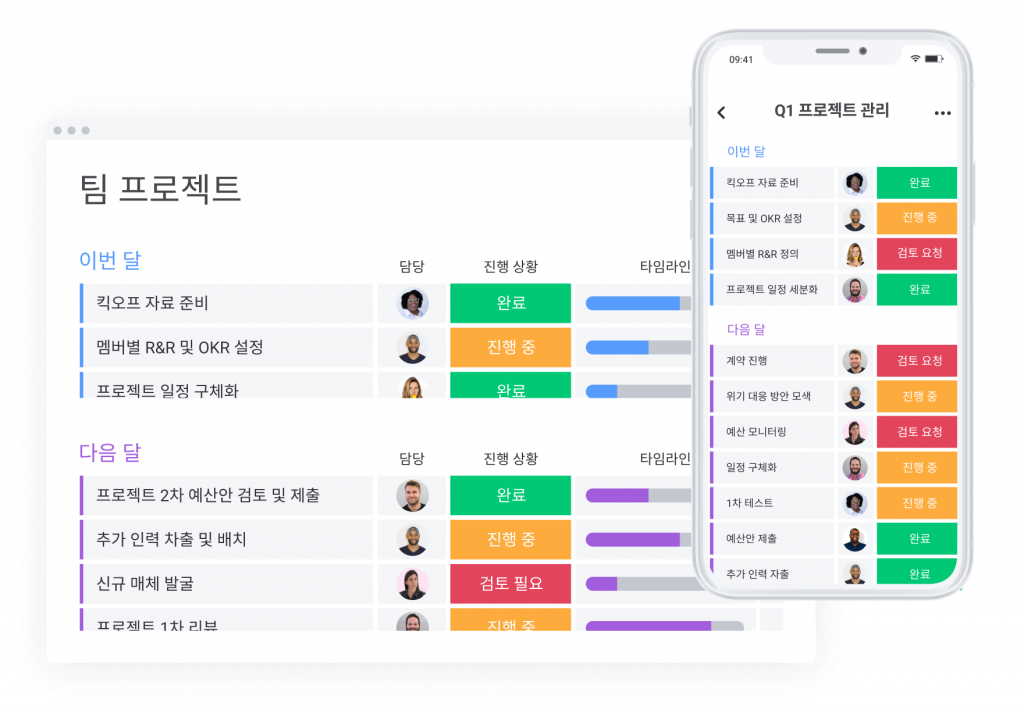 먼데이닷컴은 시간과 공간의 제약 없이 디지털 워크스페이스에서 실시간 협업이 가능하도록 모바일 앱(Android, iOS)을 지원하고 있습니다. PC와 모바일 앱에서 어디에서든지 원활하게 업무를 이어가 보세요!