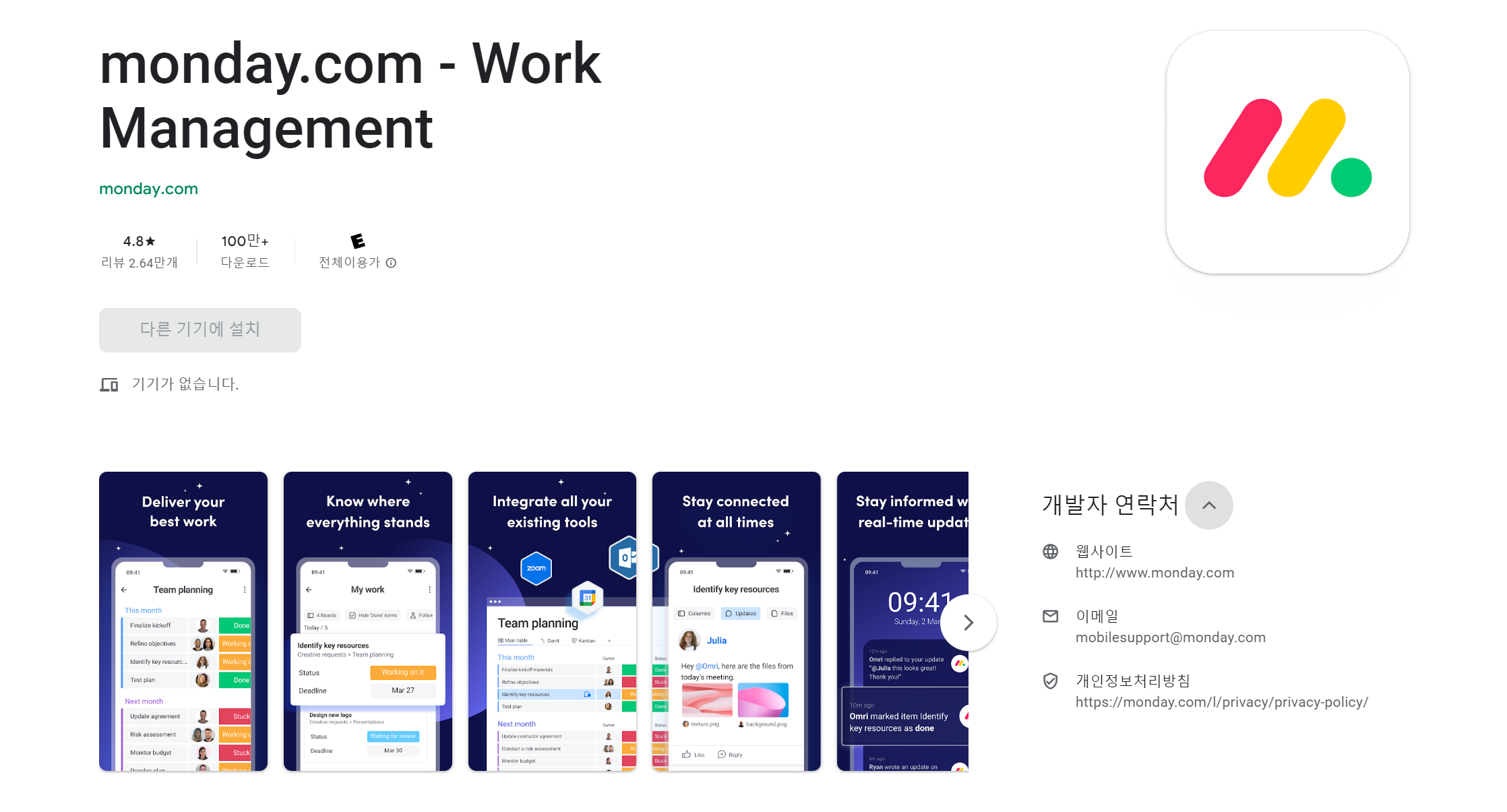 모바일로 먼데이닷컴을 사용하고 싶어요!